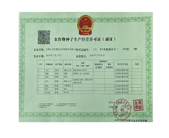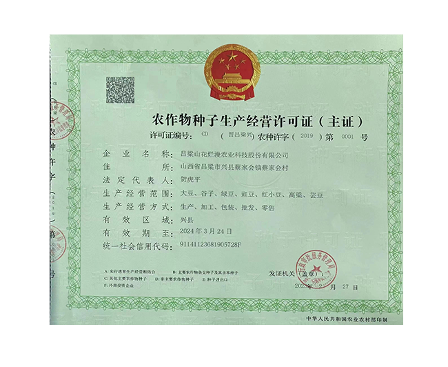 呂梁山花爛漫農業(yè)科技股份有限公司是山西省農業(yè)產業(yè)化重點龍頭企業(yè),公司成立于2008年,法人代表賀虎平,注冊資本1000 萬元,現(xiàn)有員工 30 人。公司位于興縣蔡家會鎮(zhèn)蔡家會村建有占地面積1萬多平方米生產區(qū)和辦公區(qū),年總加工雜糧能力達到4萬噸。擁有一套日精加工50噸谷子成套設備生產流水線;擁有一套日精加工30噸豆面、蕎面設備流水生產線;擁有一套日精加工50噸紅小豆、豇豆、綠豆、腎型黃豆、紅蕓豆設備流水生產線,2020年引進省農科院農產品加工研究所谷子精深加工技術,目前設計年產300噸的小米油加工一條龍生產線已經安裝調試完畢,產品經化驗達到國家一級油標準,并獲得兩項專利證書。主要產品有“山花爛漫”牌有機小米、綠色小米各種精美包裝系列;蔡家會村豇豆面、豌豆面等雜糧面、手搟豆面系列、以及有機精品雜糧系列。擁有“山花爛漫”山西省著名商標。公司采用線下和線上銷售相結合的營銷模式。